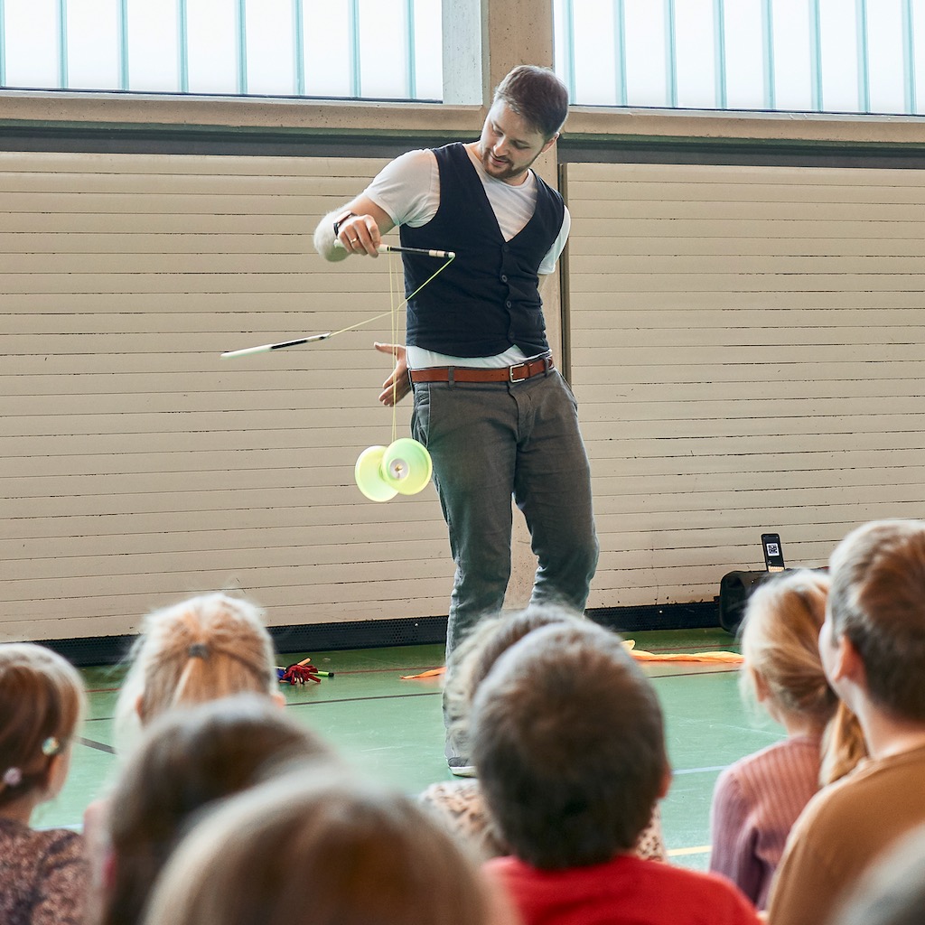 Gerne komme ich für einen Vormittag vorbei und lasse in Schulstundenblöcken eure Schüler die Freude am Werfen, Fangen, Wirbeln, Drehen und Schwingen entdecken!